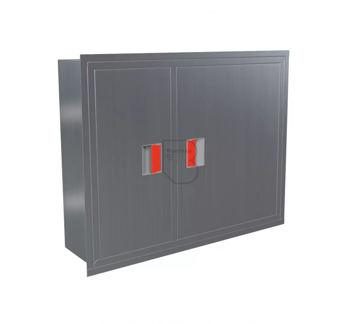 Дверцы пожарного шкафа открываются на 160 градусов. Имеют запорное устройство в виде пластиковой защелки.
