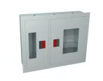 Дверцы пожарного шкафа открываются на 160 градусов. Имеют запорное устройство в виде пластиковой защелки. На каждой дверце имеется смотровое окно со вставкой из поликарбоната.